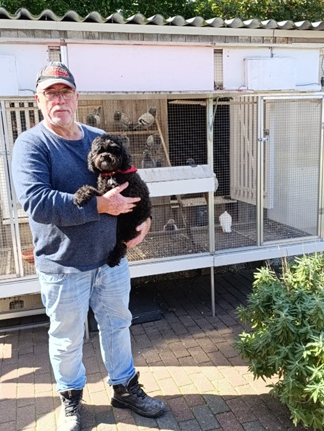 Eduard: “Mijn hok is meer een van Zon hok, wat ik samen met Hennie Averdijk - ook duivenmelker - in elkaar heb gezet en het voldoet prima, De duiven zijn altijd goed te pas,op dit moment zijn alle duiven al uit elkaar en kunnen ze ruien en de jonge doffers kunnen een vak uitzoeken.