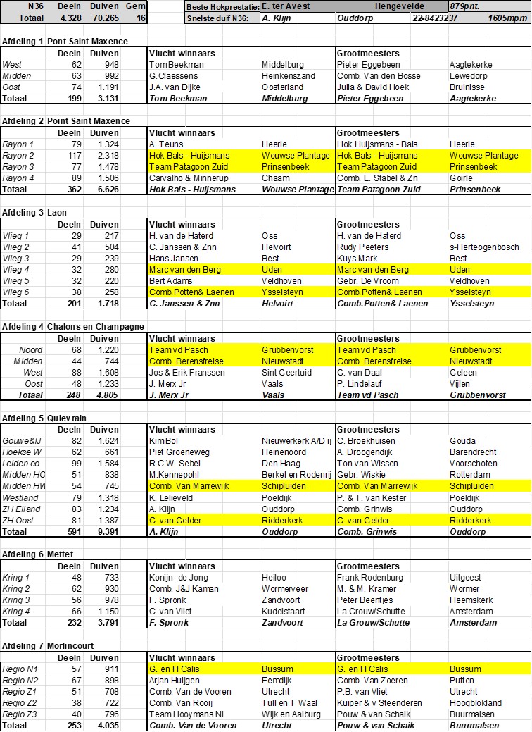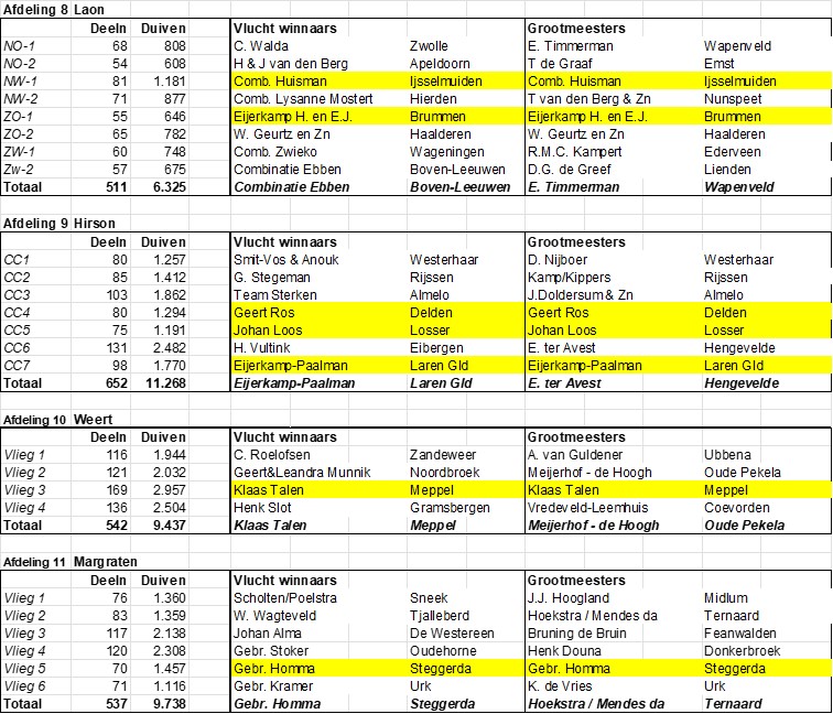 - Combinatie Potten & Laenen uit Ysselsteijn; 777 punten, 21 duiven mee en 20 prijzen.