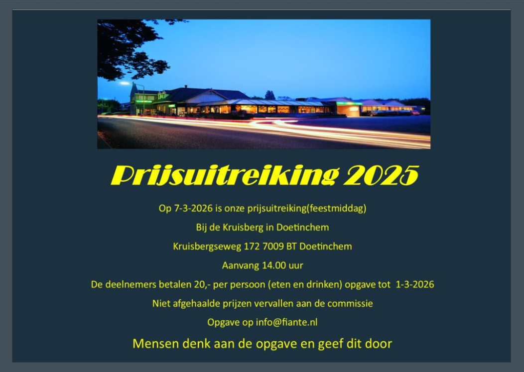 - 7 maart: Prijsuitreiking 2025 Fiante, aanvang 14.00 uur, www.fiante.nl