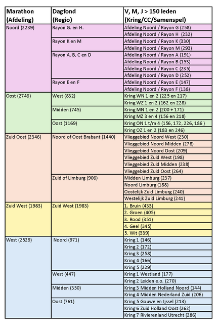 Kijkend naar de indeling van de Dagfond, is wellicht alles nog niet in vlieggebieden ingedeeld en is er nog de nodige ongelijkheid in aantallen liefhebbers. Wij zullen daarover contact opnemen met de betreffende Afdelingen.